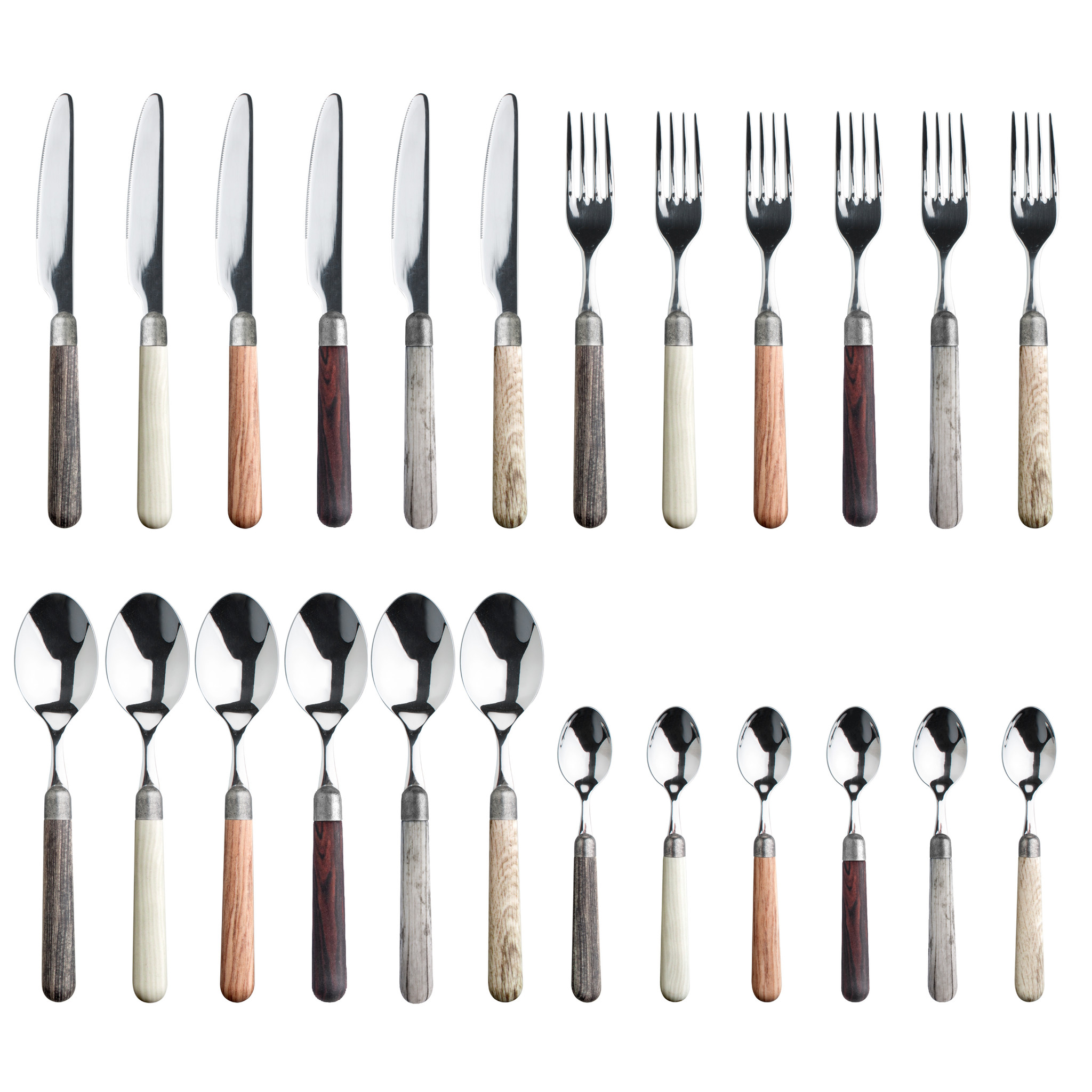 Ob Sie eine Dinnerparty veranstalten, ein Familienessen genießen oder nach dem perfekten Geschenk suchen, das Antique Wood 6-Personen Besteckset hebt jedes Essensereignis auf ein neues Niveau. Die Mischung aus Luxus, Haltbarkeit und rustikalem Charme macht es zu einem Muss für Ihr Zuhause und passt sowohl zu traditionellen als auch zu modernen Tischdekorationen.