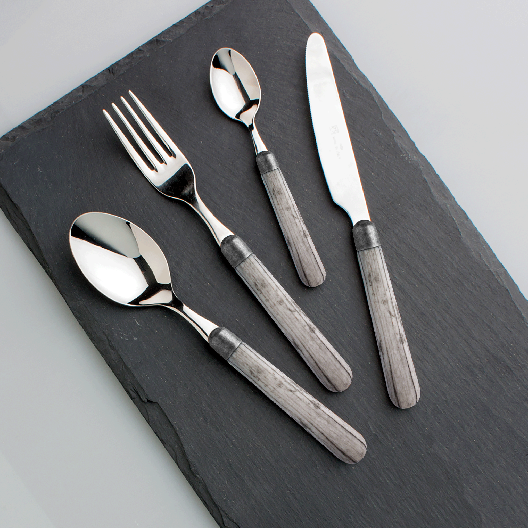 - Messer: Aus AISI 420 Edelstahl für die Messer und AISI 430 Edelstahl für Gabeln und Löffel, mit feiner Verzahnung der Messer für präzise Schnitte und lang anhaltende Schärfe.