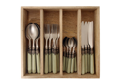 Vintage 24-teiliges Besteck Grasgrün in Holzbox