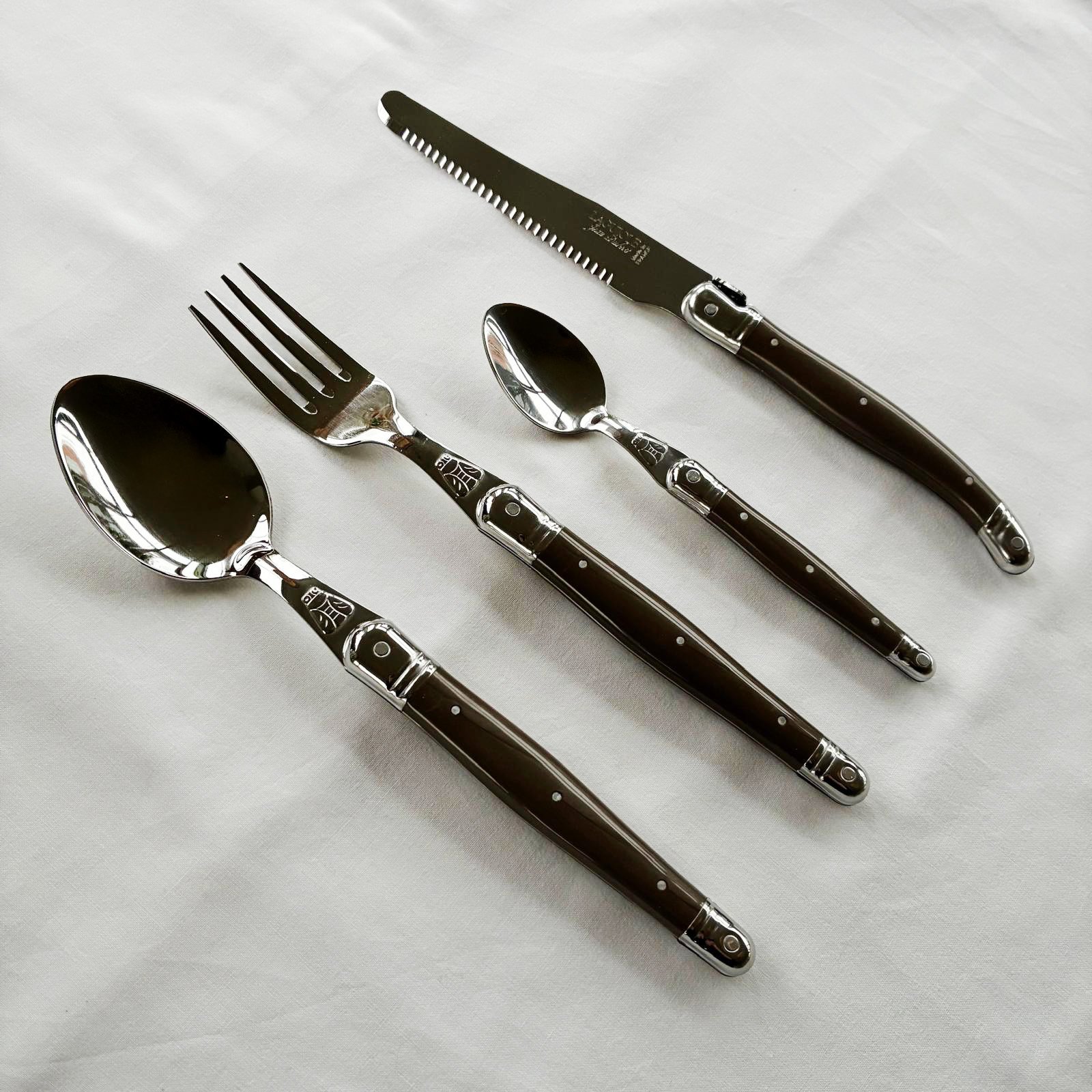 Laguiole Classic Tafelbesteck (24-teilig) – Für 6 Personen – 'Mokka Braun' in Holzbox | Französisches Design