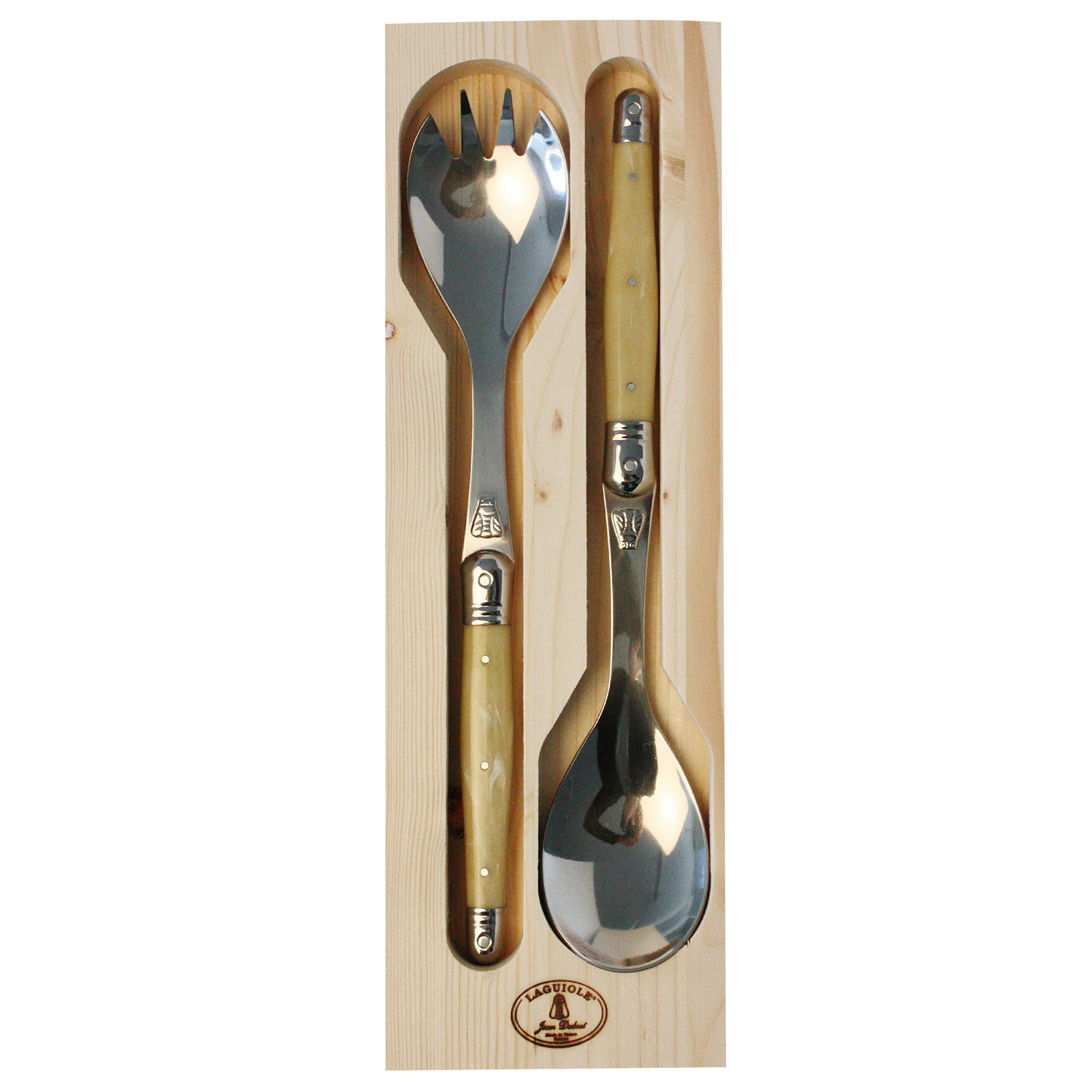 Die Marke Laguiole ist traditionell für ihre Steakmesser bekannt. Heute gibt es zahlreiche weitere Artikel, wie dieses Salatbesteck. Natürlich trägt auch dieses Salatbesteck das Honigbienen-Logo.