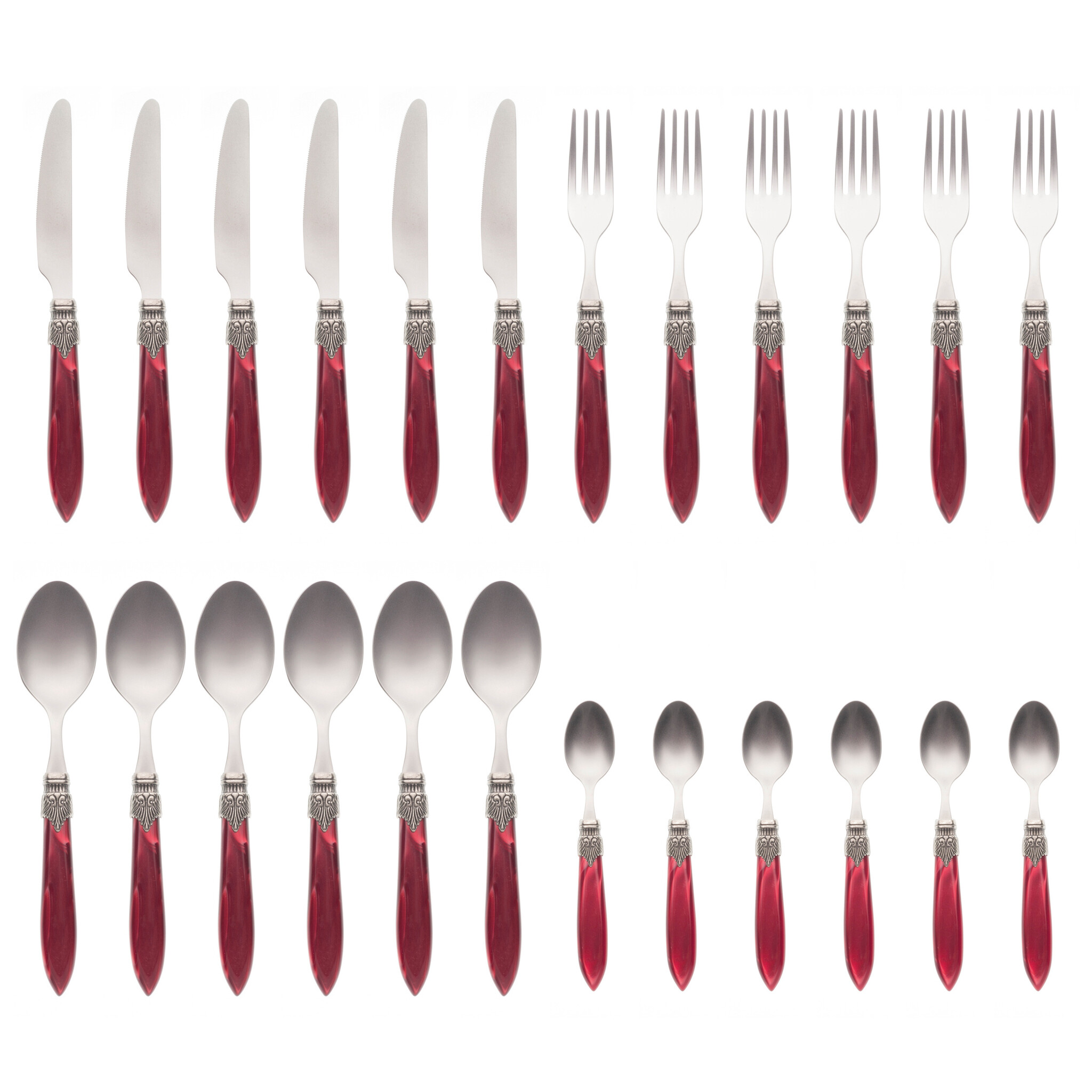 Murano Tafelbesteck (24-teilig) – Für 6 Personen – Bordeaux in Holzbox | Italienisches Design