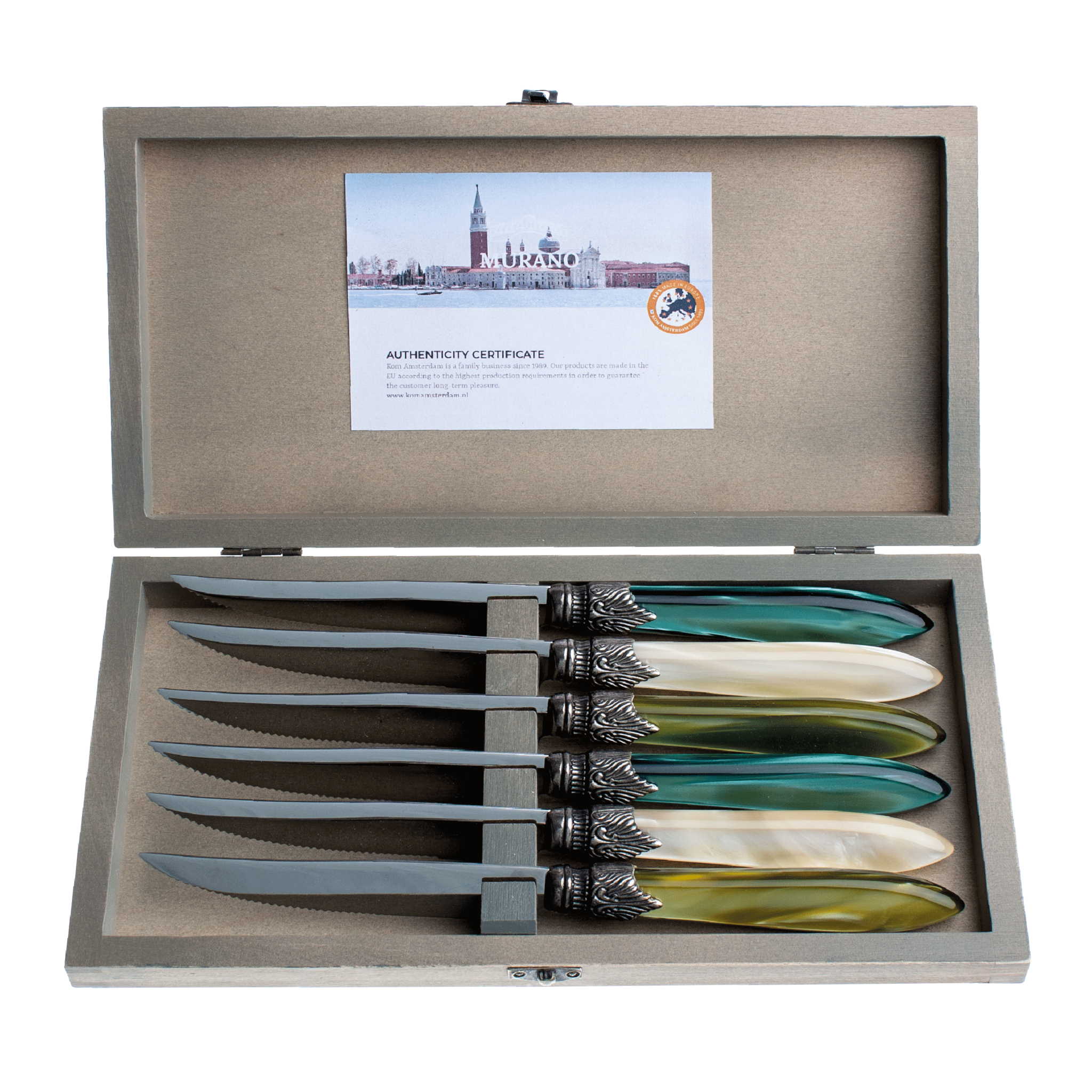 Murano 6 Steakmesser in Kiste Forest Mix