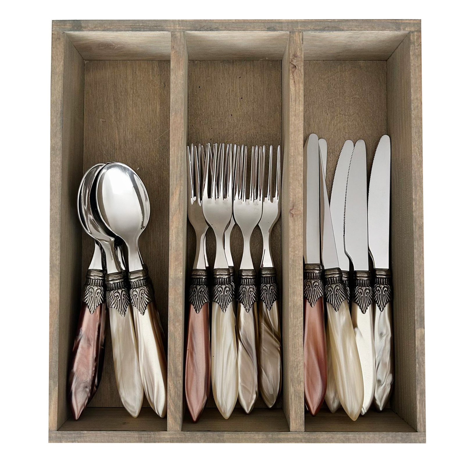 - 18-teiliges Besteck in Holzkiste