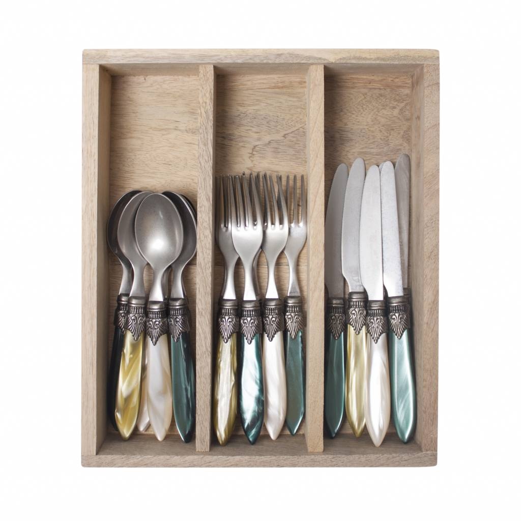 Murano Besteckset (18-teilig) – Für 6 Personen – 'Forest Mix' in Holzbox | Ideal für Dessert, Frühstück oder Vorspeisen – Elegantes Italienisches Design