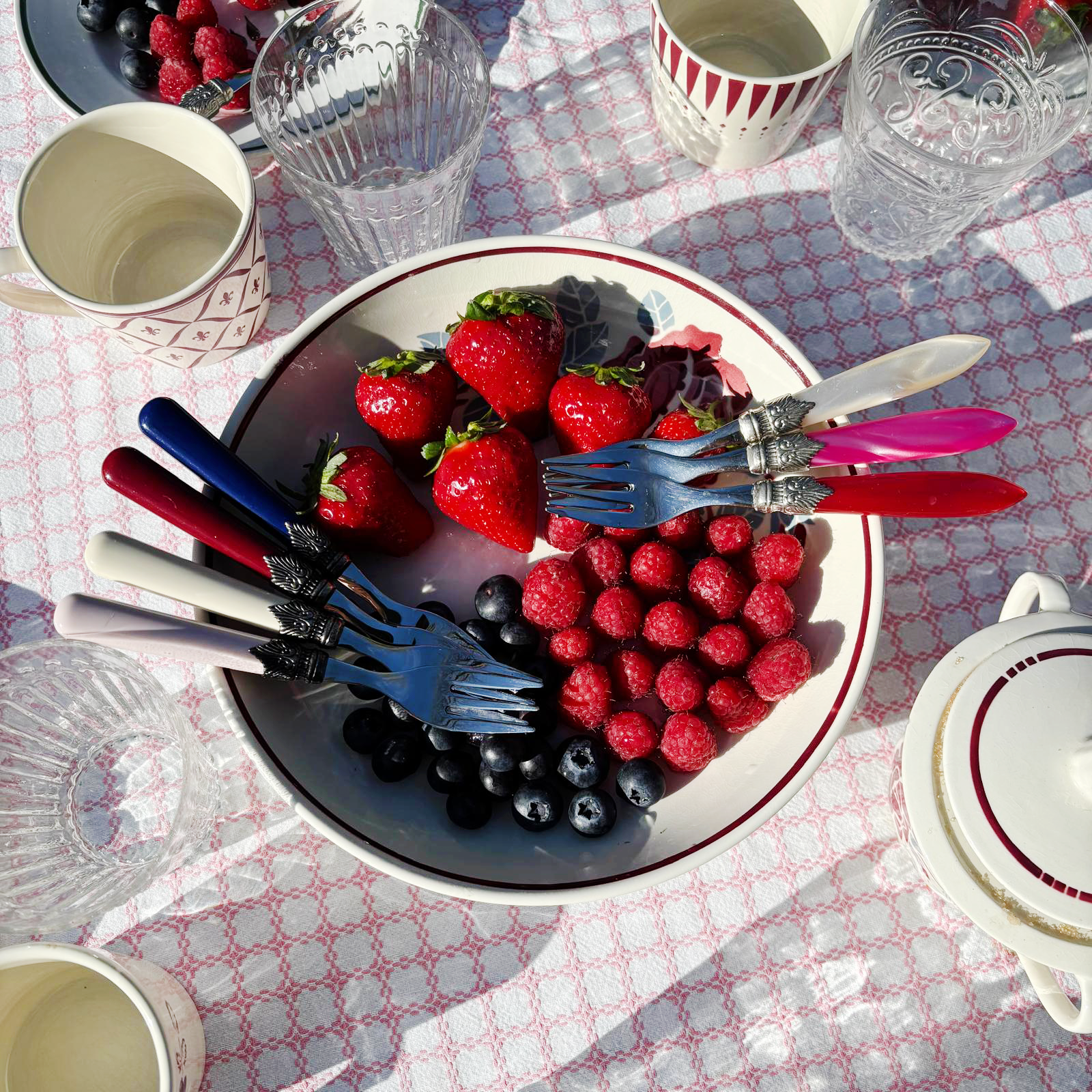 Murano ist der Klassiker unter unseren Bestecken. Seit ihrer Einführung im Jahr 1994 ist die Kollektion zu einem umfangreichen Sortiment mit bis zu 16 Farben und mehr als 20 Besteckteilen gewachsen. Dass dieses Besteck so beliebt ist, hat vor allem mit der Optik, der Qualität und den vielen Möglichkeiten zu tun. Es sieht klassisch mit einer Anspielung auf den Barock aus, passt aber aufgrund der Farbauswahl und Kombinationsmöglichkeiten genauso gut in ein modernes Interieur. Mit diesem Besteck können Sie in alle Richtungen gehen: vom schlichten Klassiker bis zu einer farbenfrohen Sammlung von Fröhlichkeit auf dem Tisch und alles dazwischen!