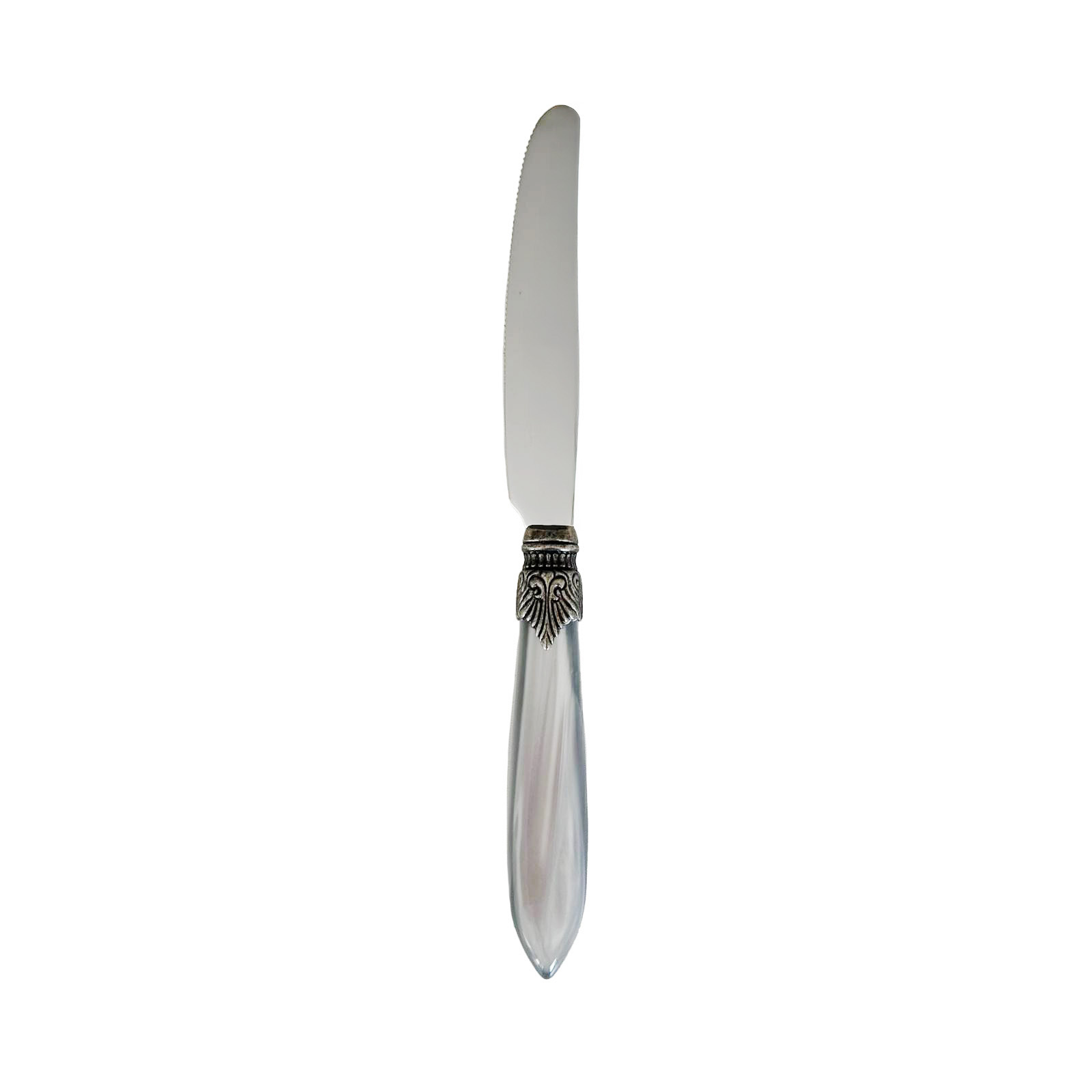 PMMA (Polymethylmethacrylat) ist ein transparenter thermoplastischer Kunststoff, besser bekannt als Acryl. Dieser starke Kunststoff lässt sich beim Erhitzen leicht in alle möglichen Formen modellieren. Das Material ist transparent und eignet sich daher sehr gut, um den für dieses Besteck charakteristischen Perlmutt-Effekt nachzuahmen.