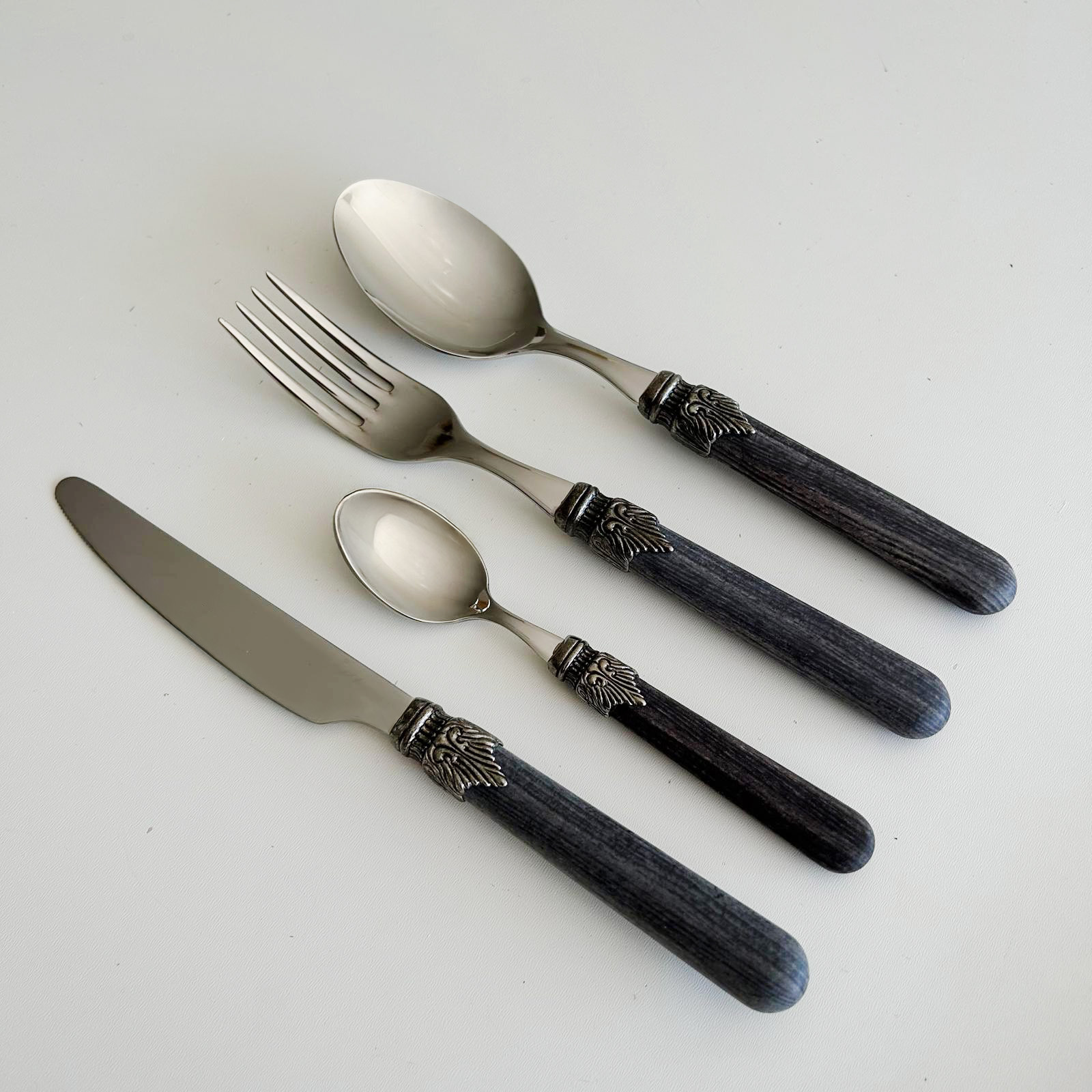 Ob Sie eine Dinnerparty veranstalten, ein Familienessen genießen oder nach dem perfekten Geschenk suchen, das Antique Wood 6-Personen Besteckset hebt jedes Essensereignis auf ein neues Niveau. Die Mischung aus Luxus, Haltbarkeit und rustikalem Charme macht es zu einem Muss für Ihr Zuhause und passt sowohl zu traditionellen als auch zu modernen Tischdekorationen.