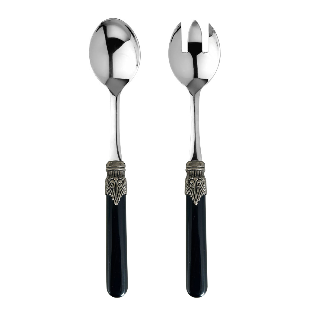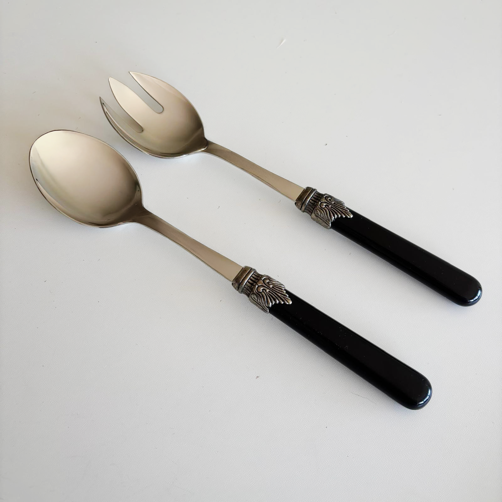 Salatgabel und Salatlöffel sind 25,5 cm lang. Es handelt sich um ein komfortables Salatbesteck, das sich nicht nur zum Servieren von Salaten eignet, sondern auch hervorragend für Gemüse, Kartoffeln, Nudelgerichte, Aufläufe und Eintöpfe geeignet ist.