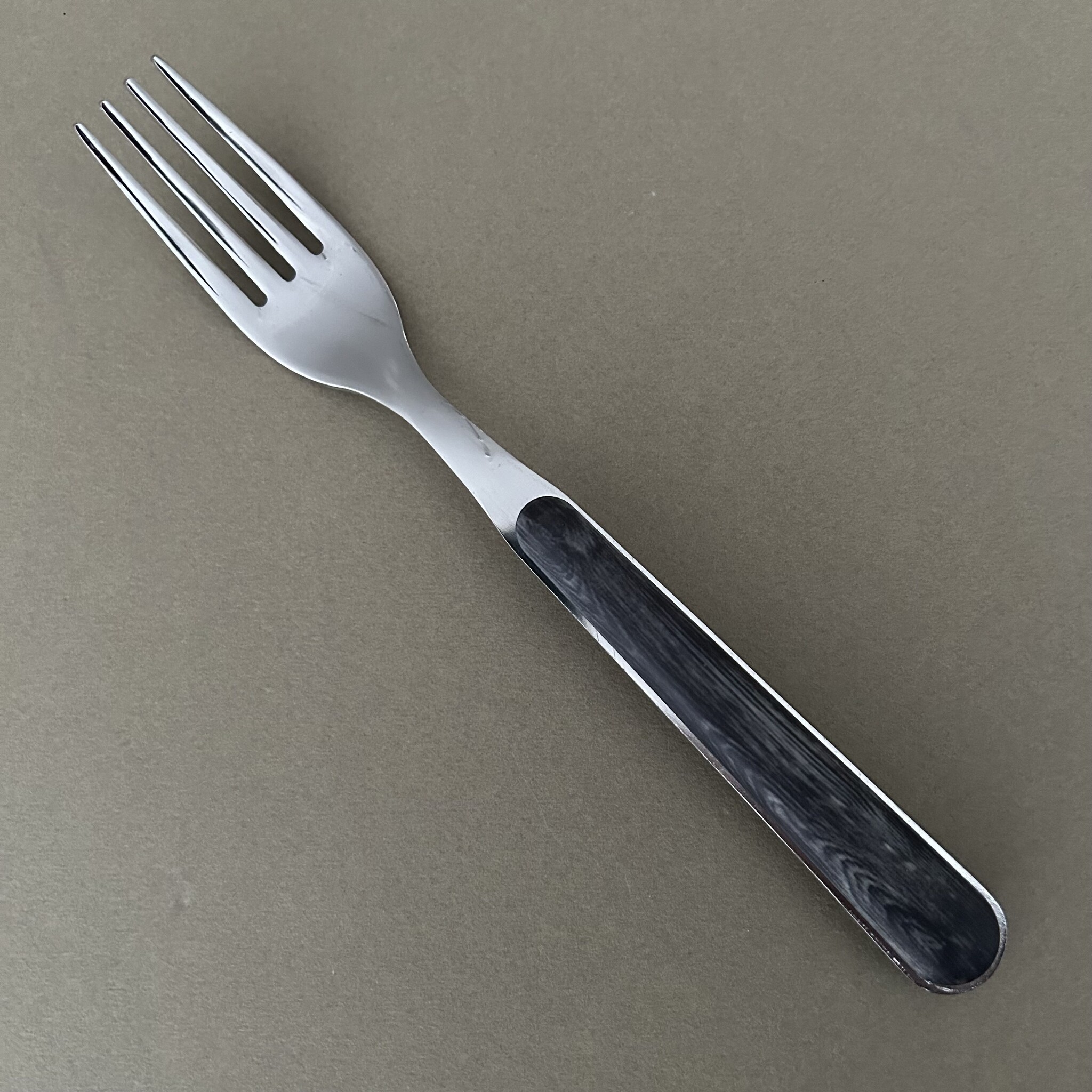 Dieser Frühstücksgabel im Holzstil wird in Italien hergestellt. Die Materialien sind von ausgezeichneter Qualität. Die Klinge besteht über ihre gesamte Länge aus einem Stück und verbiegt sich nicht. Darüber hinaus hat es eine Dicke von 1,8 mm und besteht aus Edelstahl. Der Griff besteht nicht aus Holz, sondern aus einem starken Kunststoff, der von echtem Holz kaum zu unterscheiden ist. Außerdem wurde der Griff so behandelt, dass er sich wie echtes Holz anfühlt und nicht wie ein glatter Kunststoff. Das Holzmuster wird mit einer speziellen Technik aufgetragen und verblasst nicht. Der große Vorteil dieses Bestecks ist, dass es im Gegensatz zu echtem Holz problemlos in die Spülmaschine gestellt werden kann.