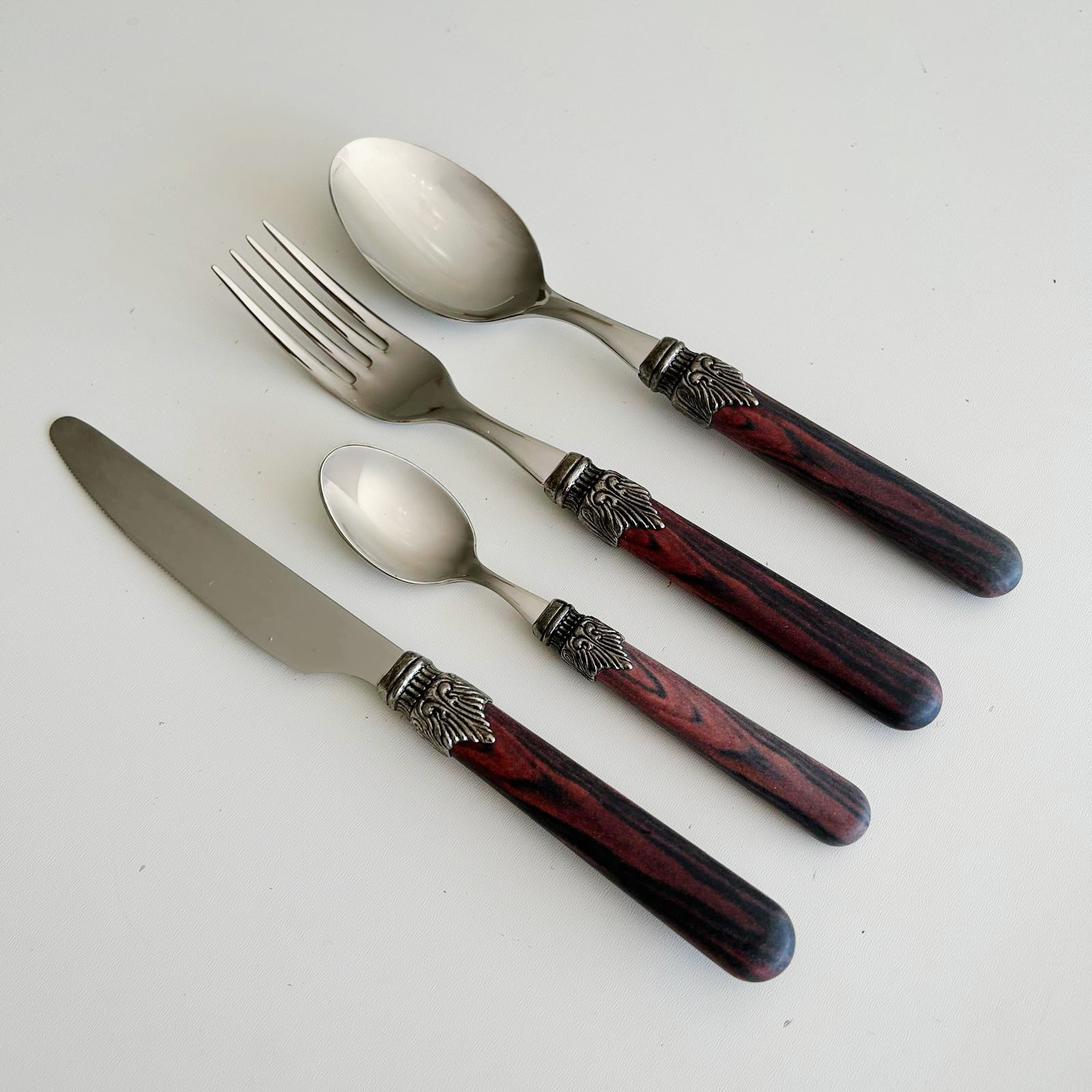 Bring luxury, style, and quality to your table with the Antique Wood 6-Person Dinner Cutlery Set. Order today and experience the perfect balance of form, function, and timeless beauty.