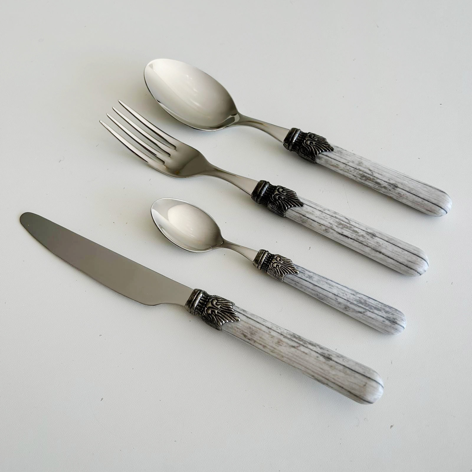 - Blades: Made from AISI 420 stainless steel for knives, and AISI 430 stainless steel for forks and spoons, with fine serration on knives for precision cutting and lasting sharpness.