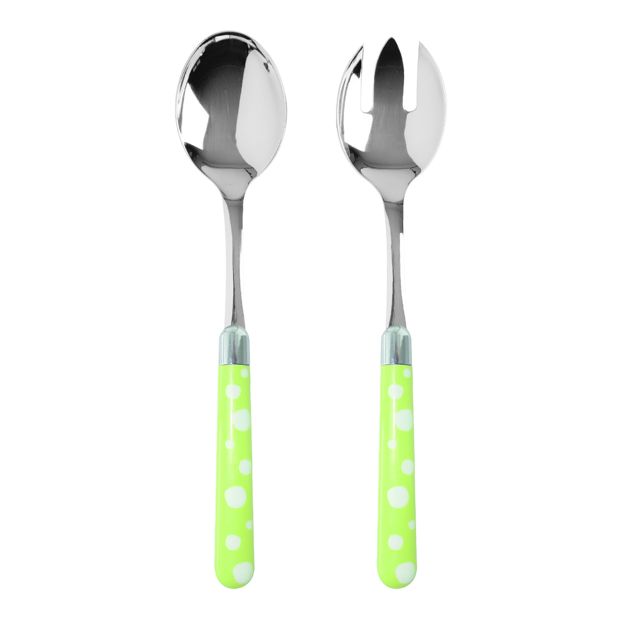 This 2-part salad cutlery is made entirely in Italy and consists of 1 salad spoon and 1 salad fork. The materials used are of good quality. The blade does not bend, has a thickness of 1.5 mm and is made of 18/10 stainless steel. The handle is made of strong plastic PBT. The color will not wear off because it is applied with a special printing technique (sublimation). It is a pleasant to hold salad set that is not only suitable for serving salads but can also be used excellently for serving vegetables, potatoes, pasta dishes, oven dishes and stews. The salad cutlery is suitable for the dishwasher.