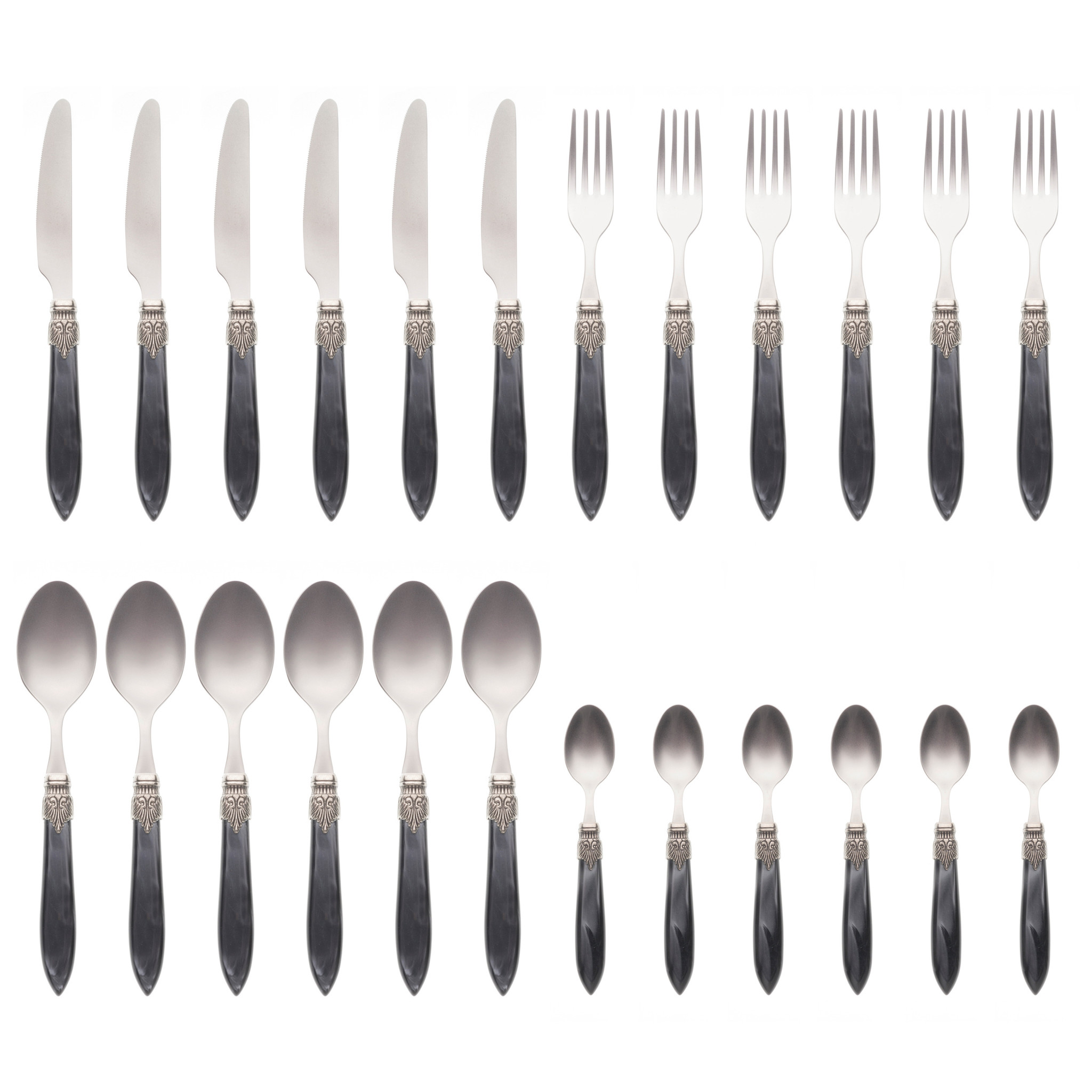 Murano Dinner Cutlery (24-piece) – For 6 People – Anthracite in Wooden Box | Italian Design
