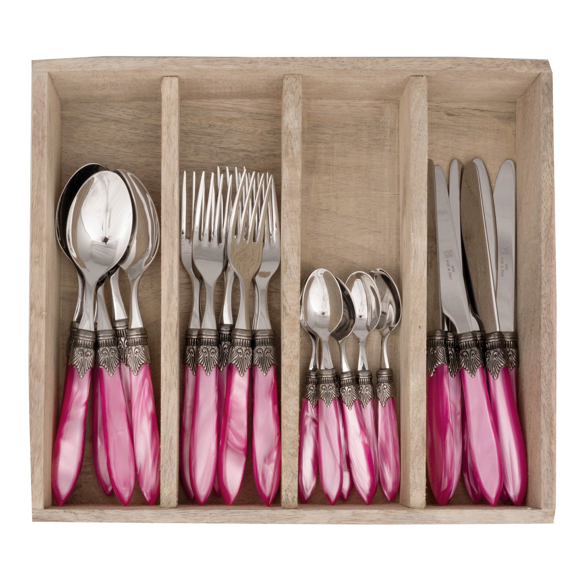 Murano Dinner Cutlery (24-piece) – For 6 People – Pink in Wooden Box | Italian Design