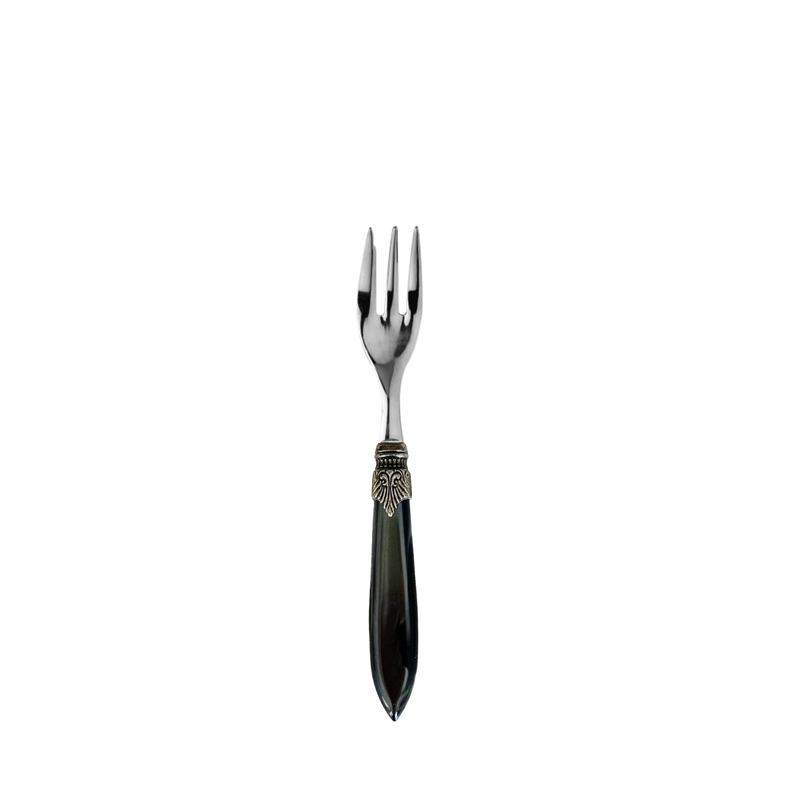 The cake fork has a stainless steel blade, a plastic handle and an aluminum ornament in the middle. The materials are of very good quality. The blade is 1.5 mm thick, does not bend and is made of 18/10 stainless steel. The handle is made of acrylic, a strong plastic with a slightly shiny mother-of-pearl effect. The color will not wear off as it is applied throughout the handle (and not as a thin coating on the surface).