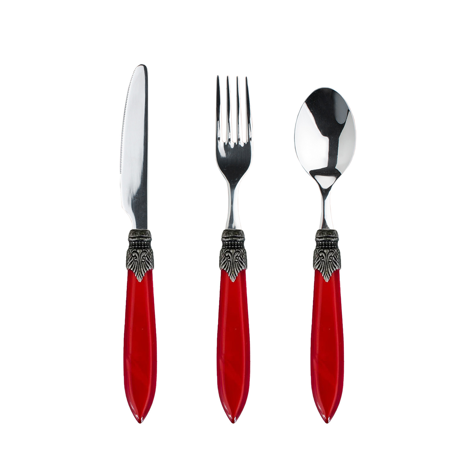 Murano Small Cutlery Set – Red (3-piece) | For Dessert, Breakfast or Starters – Elegant Italian Design
