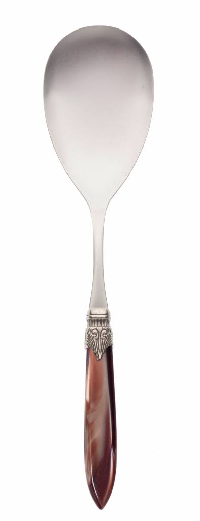 The serving spoon is 28.5 cm long. The metal spoon section measures 17 cm long and 6.5 cm wide. It's a comfortable spoon to hold, and its large surface makes it ideal for serving rice, potatoes, and vegetables. The shallow spoon is also excellent for serving casseroles, meat, fish, stews, and sauces.
