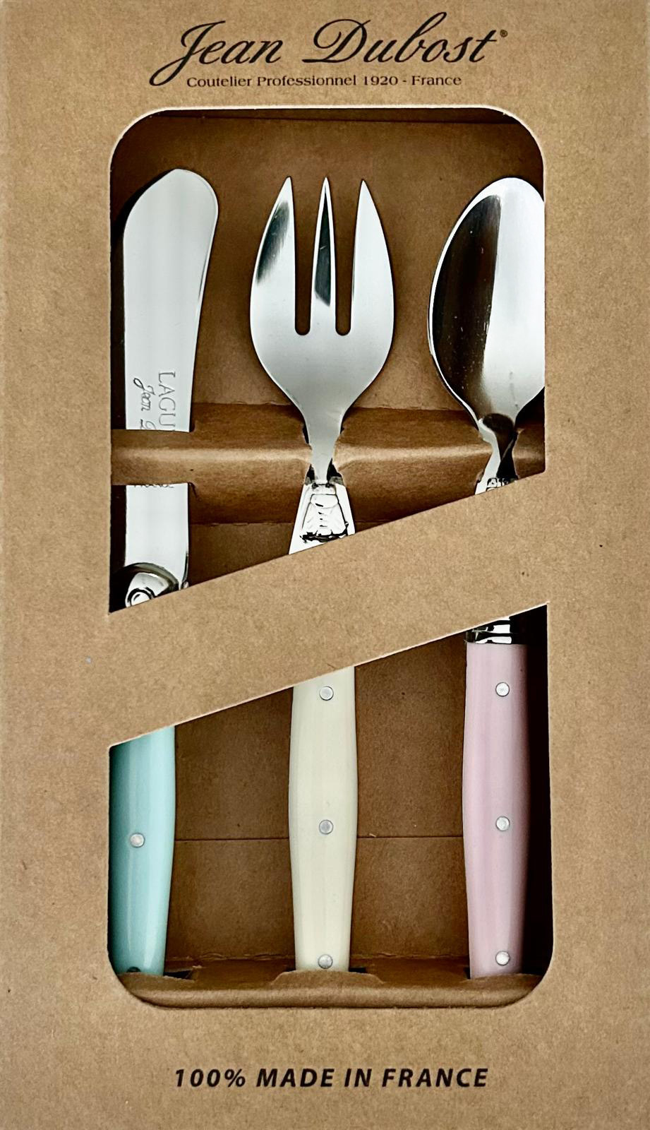 Laguiole Couverts pour Enfants 3 pièces - Couleurs pastel, parfaits pour les tout-petits et les jeunes enfants, acier inoxydable de haute qualité, lavable au lave-vaisselle