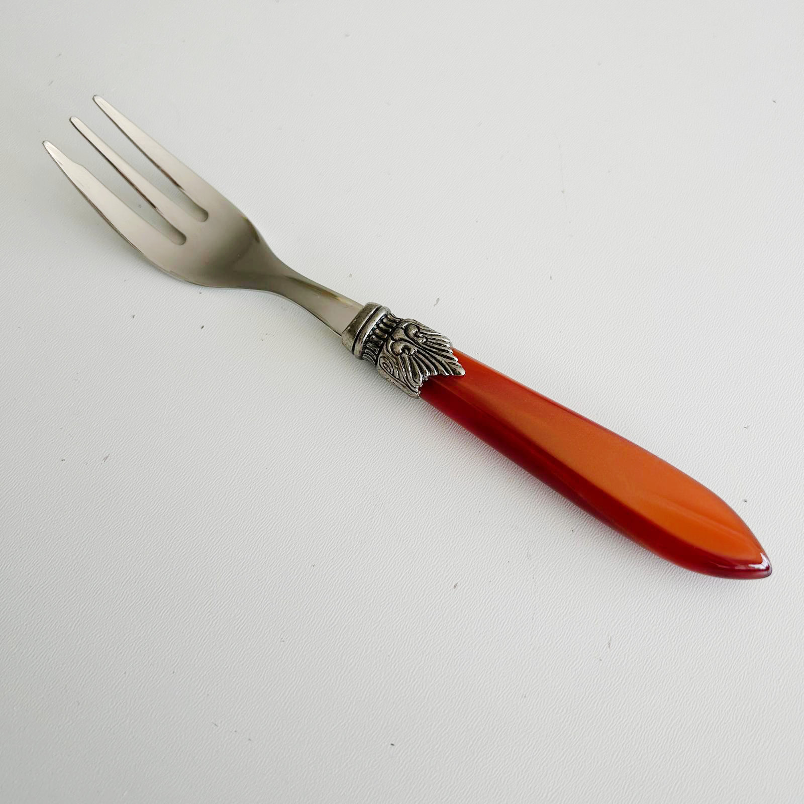 1 fourchette à gâteauCouleur : orange brique Acier inoxydable 18/10 brillantManche : plastique effet nacréGarantie 2 ans sur les défauts de fabrication100% made in ItalyLave-vaisselle jusqu'à 55°C