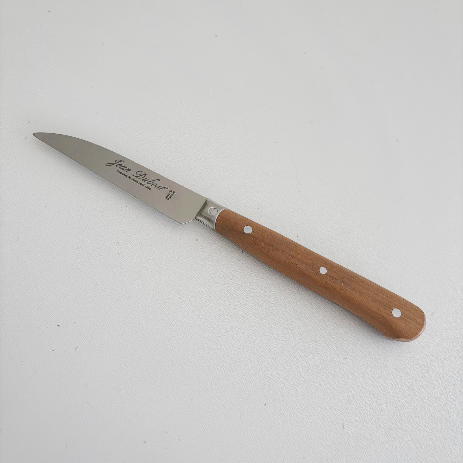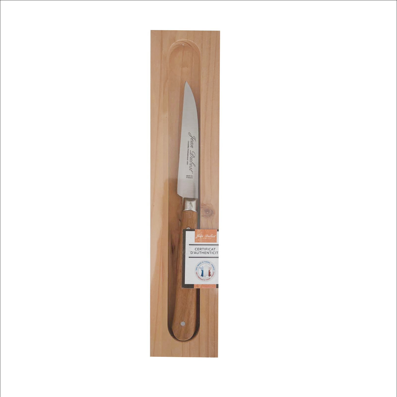 La marque Jean Dubost est traditionnellement connue comme producteur de couteaux à steak Laguiole. De nos jours, il existe de nombreux autres articles disponibles, comme cet ensemble de couteaux de cuisine français en chêne. Ce sont des modèles intemporels, dont la production a débuté en 1920. Ils ont été si bien accueillis que pratiquement rien n'a changé dans le modèle et les matériaux utilisés depuis lors.