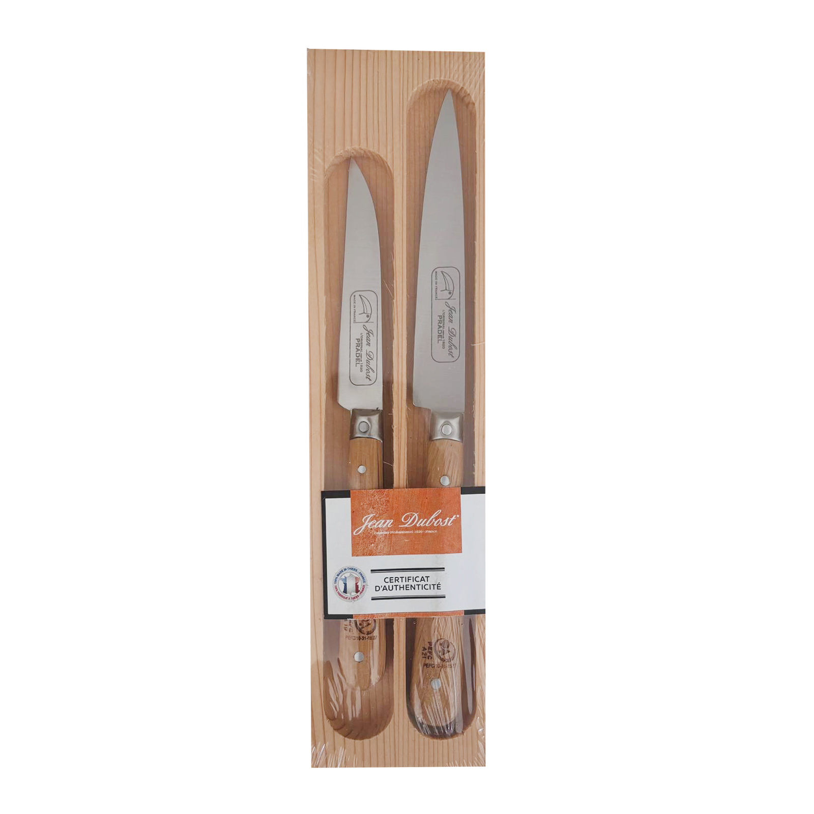Jean Dubost Pradel Ensemble de Couteaux d'Office (18 cm) et de Couteaux à Légumes (20,5 cm) 'Bois de chêne'