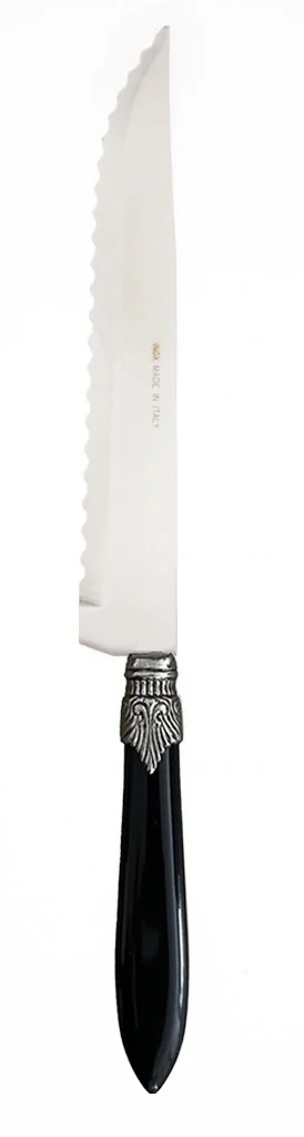 La lame en acier inoxydable de ce couteau à découper est dentelée et idéale pour trancher le filet mignon, le Chateaubriand, le rosbif, le gigot d'agneau et la dinde. Sa lame tranchante est également idéale pour trancher les baguettes et autres pains. Ce couteau est entièrement fabriqué en Italie et passe au lave-vaisselle.