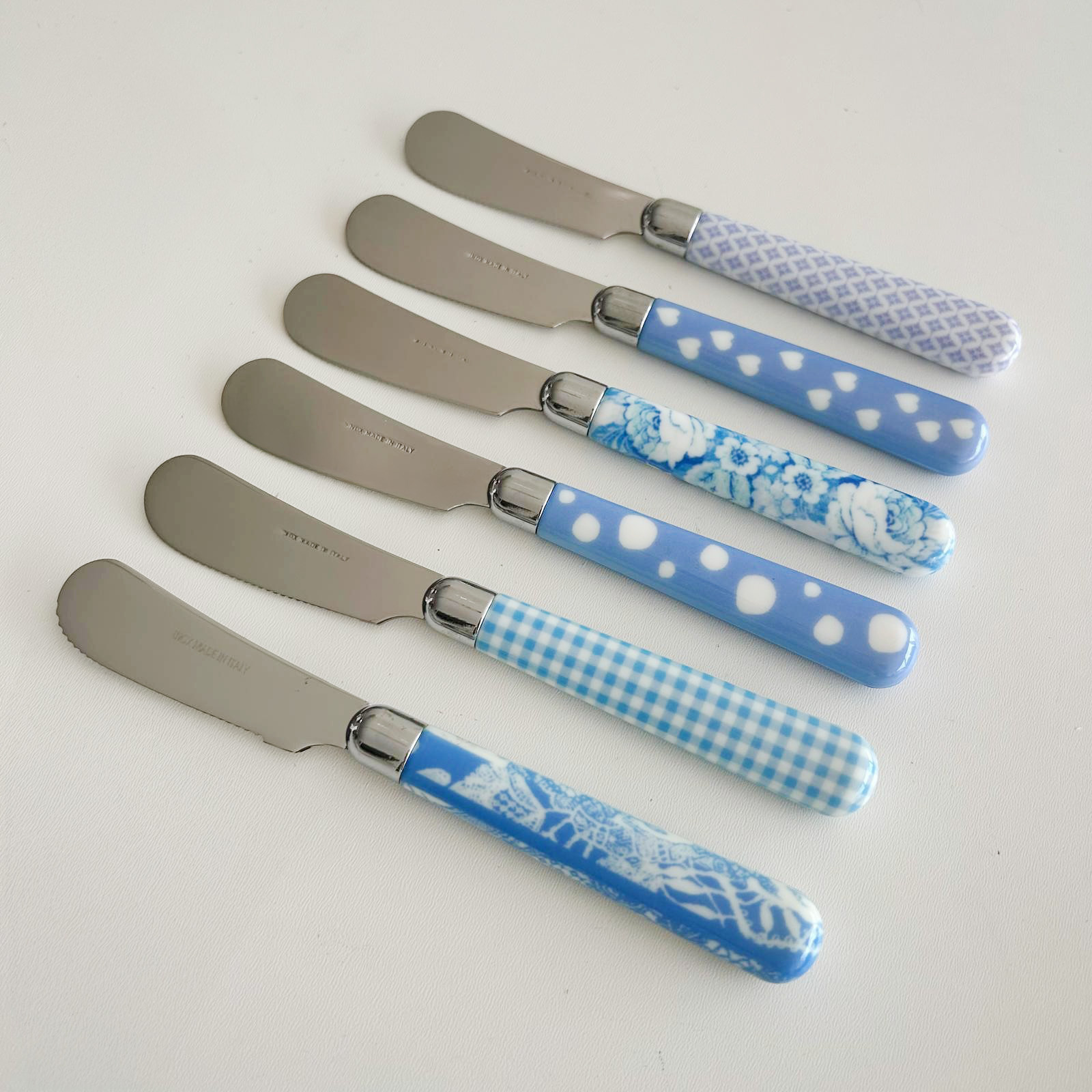 - Ensemble de 6 couteaux à beurre avec différents motifs mélangés