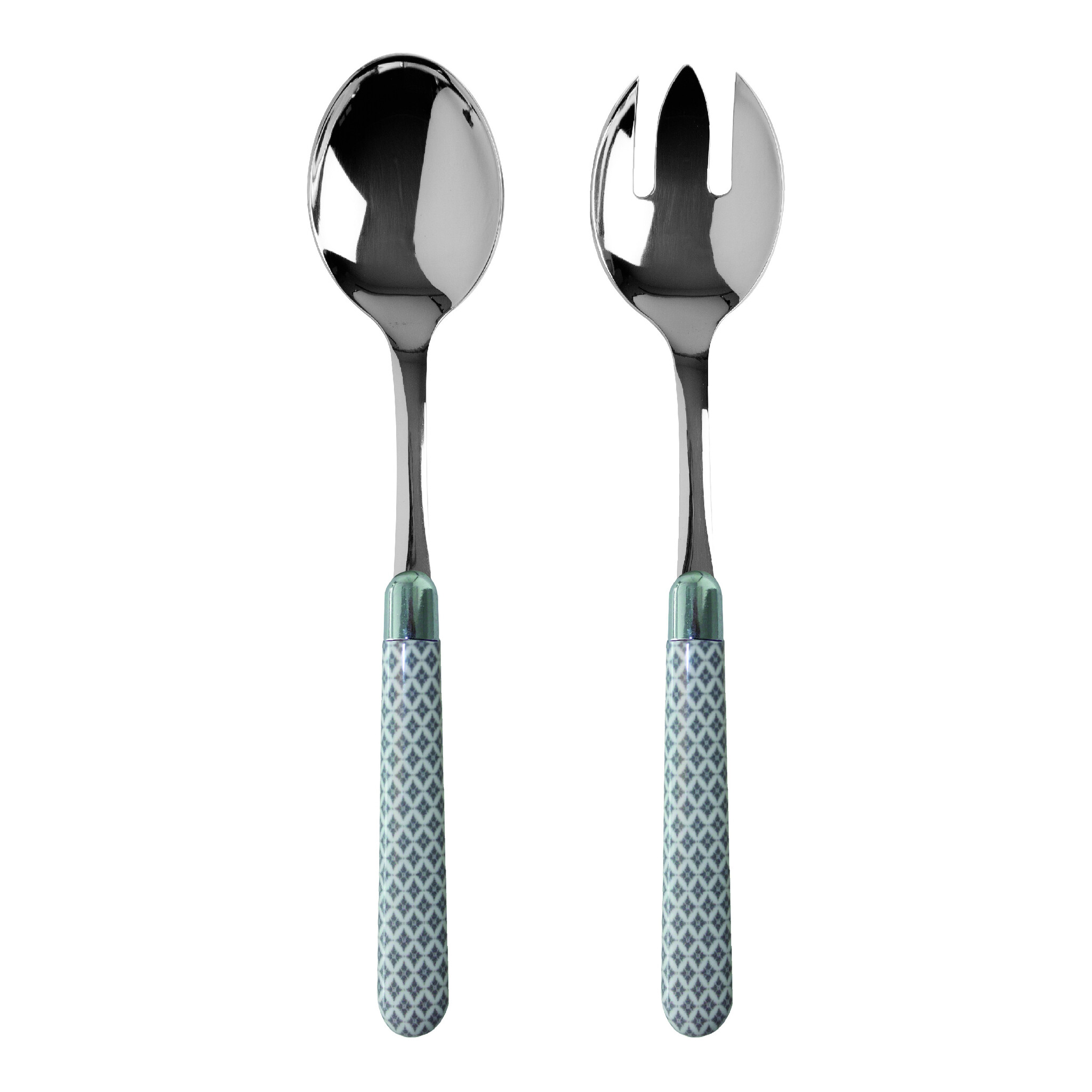 Cet ensemble à salade 2 pièces est entièrement fabriqué en Italie et se compose de 1 cuillère à salade et 1 fourchette à salade. Les matériaux utilisés sont d'une qualité solide. La lame ne se plie pas, a une épaisseur de 1,5 mm et est en acier inoxydable 18/10. Le manche est en plastique PBT solide. La couleur ne s'efface pas car elle a été appliquée avec une technique d'impression spéciale (sublimation). C'est un ensemble de salade agréable à tenir qui convient non seulement pour servir des salades, mais également servir des légumes, pommes de terre, pâtes, plats au four et pots au feu. Les couverts à salade passent au lave-vaisselle.