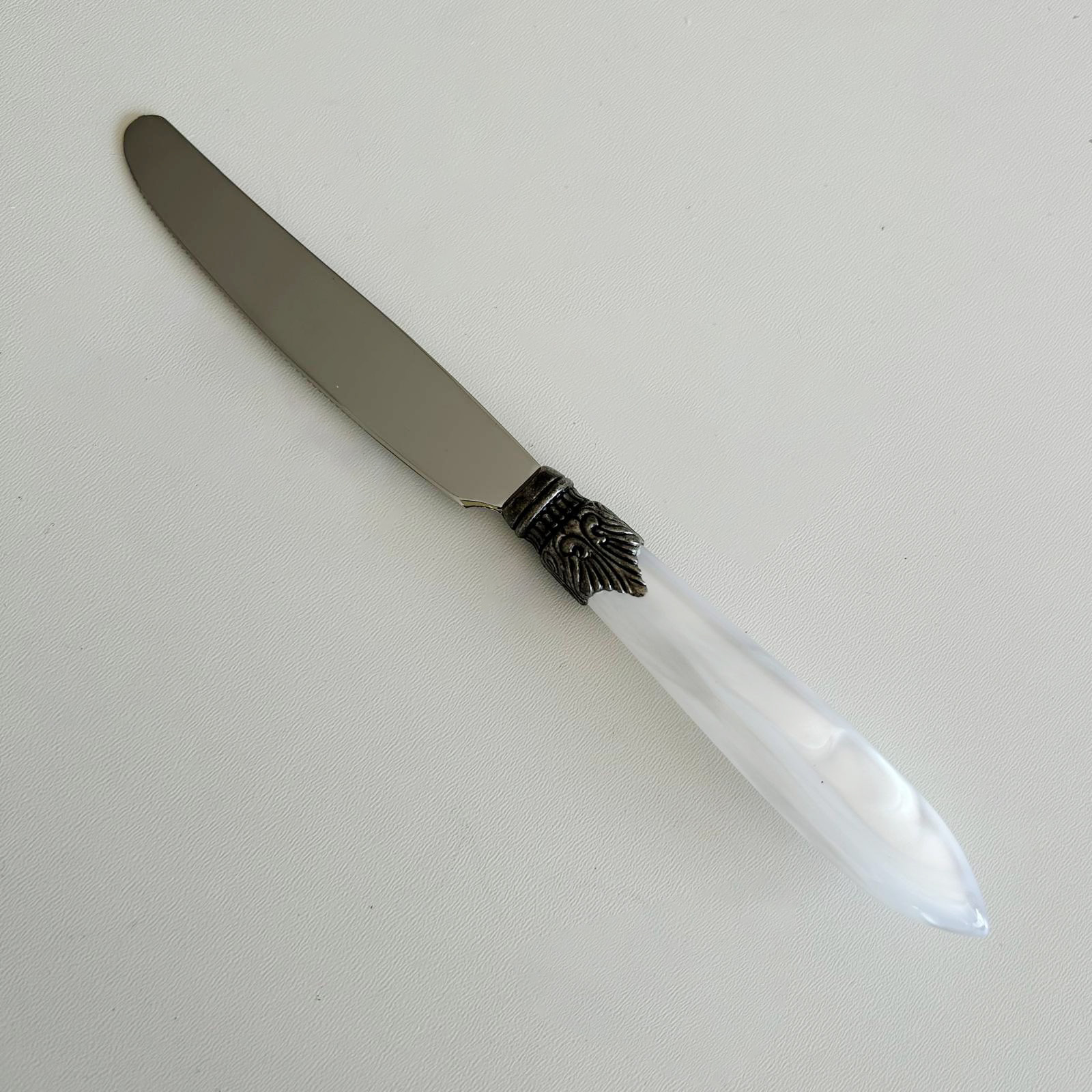 Le PMMA (polyméthacrylate de méthyle) est un plastique thermoplastique transparent plus connu sous le nom d'acrylique. Ce plastique solide peut facilement être modelé dans toutes sortes de formes lorsqu'il est chauffé. Le matériau est transparent et donc très approprié pour imiter l'effet nacré caractéristique de ces couverts.