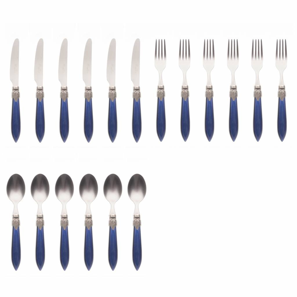 Murano Set de Couverts (18 pièces) – Pour 6 personnes – Bleu dans un coffret en bois | Idéal pour le Dessert, le Petit Déjeuner ou l’Entrée – Design Italien Élégant