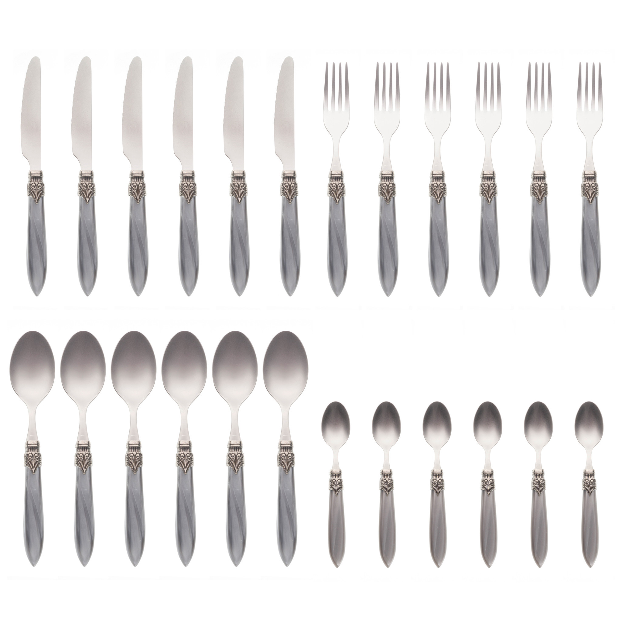 Murano Couverts de table (24 pièces) – Pour 6 personnes – Gris dans un coffret en bois | Design italien