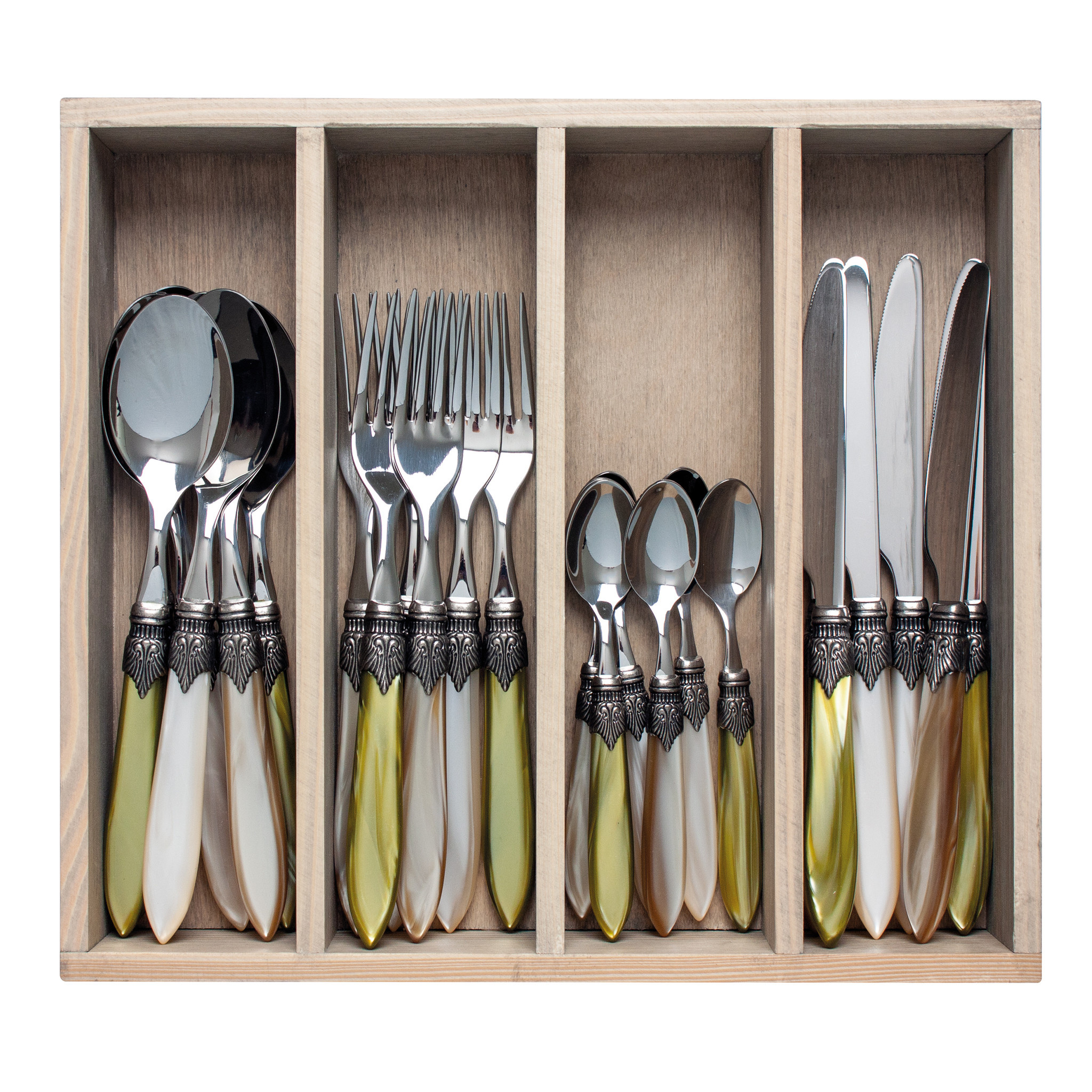 Murano Couverts de table (24 pièces) – Pour 6 personnes – 'Prairie Mix' dans un coffret en bois | Design italien