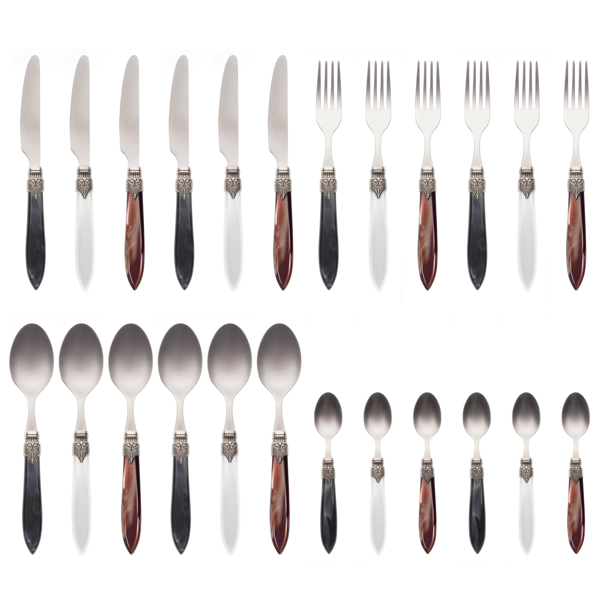 Murano Couverts de table (24 pièces) – Pour 6 personnes – 'Classique Mix' dans un coffret en bois | Design italien