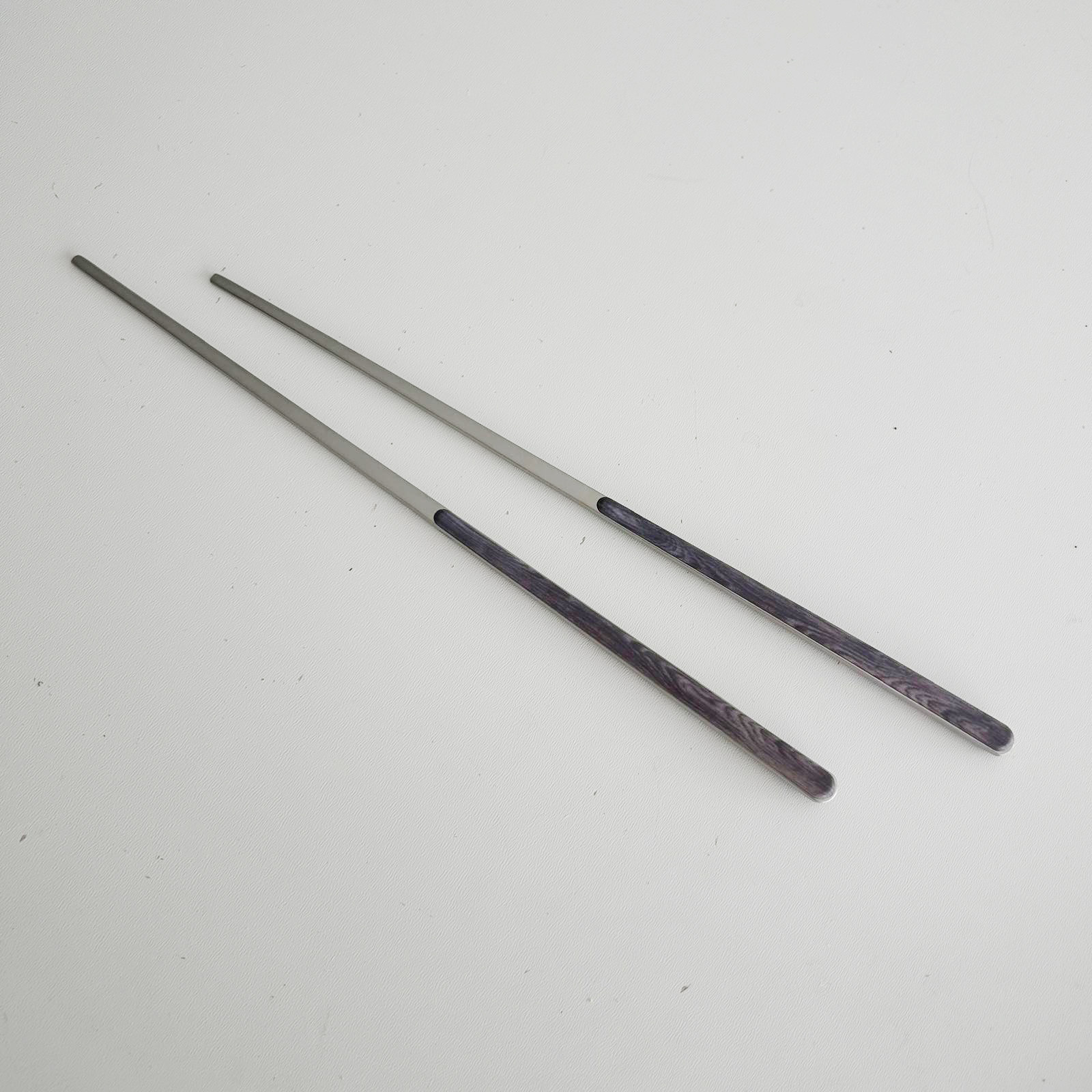Ces couverts Wood Style à imprimé « palissandre » sont fabriqués en Italie. Les matériaux sont d'excellente qualité. La lame est constituée d'une seule pièce sur toute la longueur, est en acier inoxydable et ne se plie pas. Le manche est en plastique solide. Le motif palissandre est appliqué selon une technique spéciale et ne se décolore pas. L'ensemble se compose de 2 baguettes avec lesquelles peuvent être mangés des sushis et de nombreux autres plats asiatiques. Ces couverts passent au lave-vaisselle.