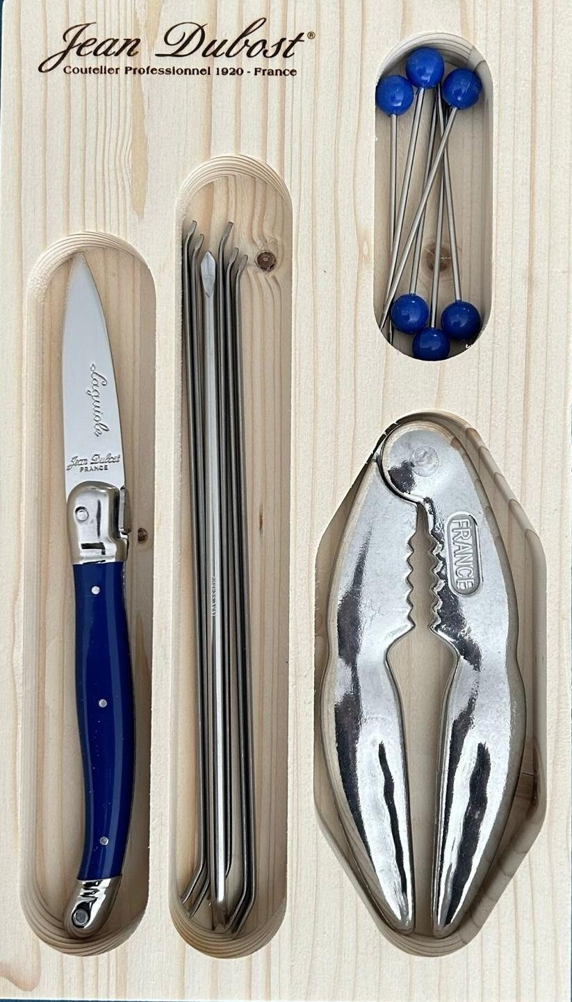 Laguiole Zeevruchtenset 'Blauw' - 1 Krabtang, 1 oestermes, 6 kreeftvorkjes & 6 kokkelprikkers