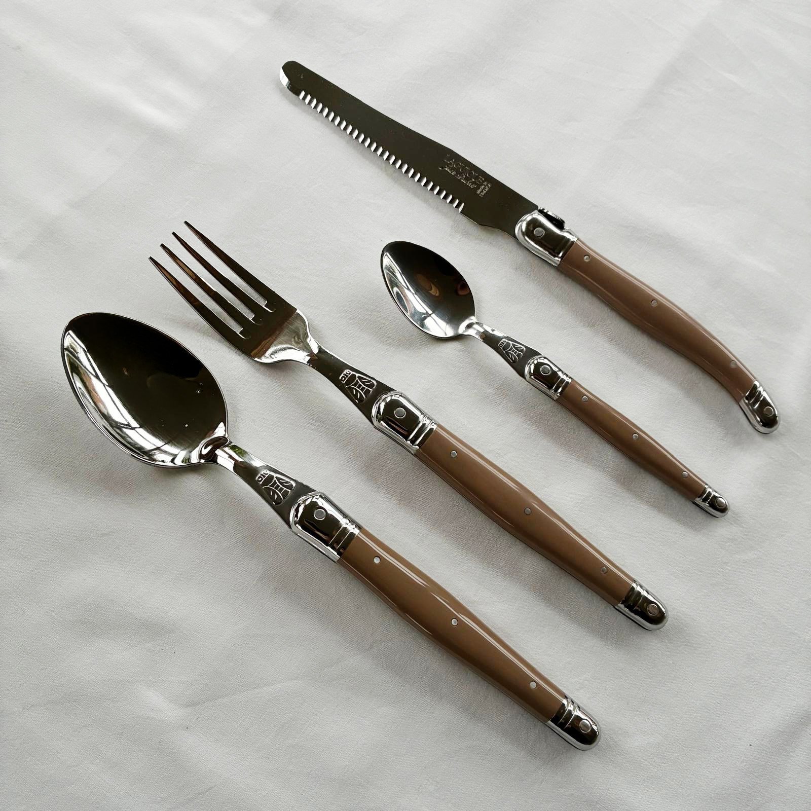 Laguiole Classic Dinerbestek (24-delig) – Voor 6 Personen – 'Leem Bruin' in Houten Kist | Frans Design