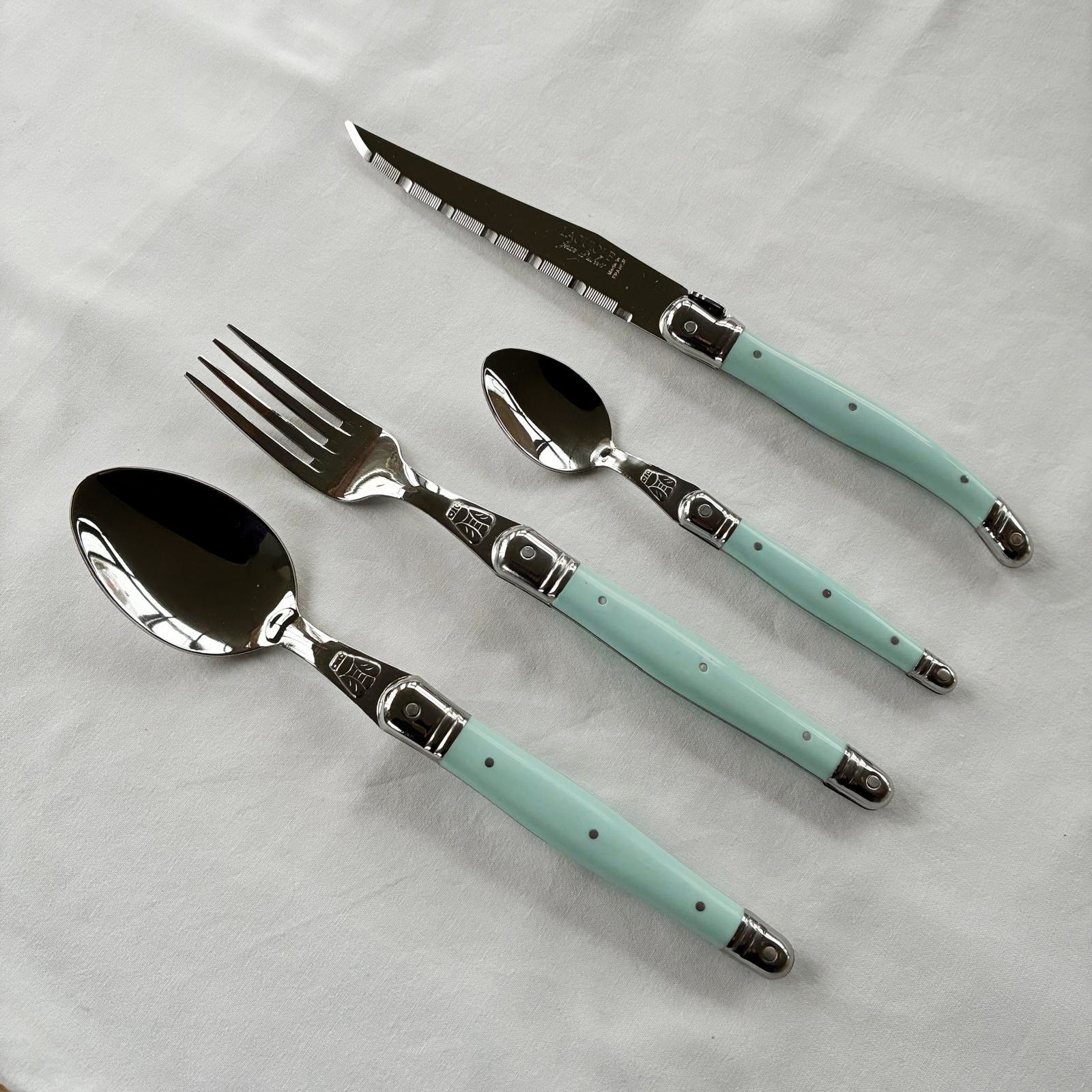 Laguiole Classic Steak Bestek (24-delig) – Voor 6 Personen – 'Lagune Blauw' in Houten Kist | Frans Design