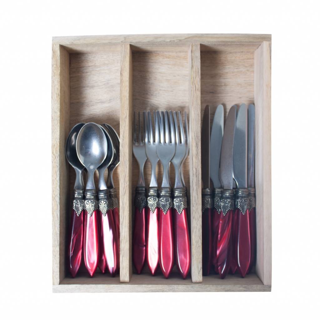 Murano Ontbijt- & Dessertbestek (18-delig) – Voor 6 Personen – Bordeaux in Houten Kist | Bestekset voor Ontbijt, Dessert of Voorgerecht