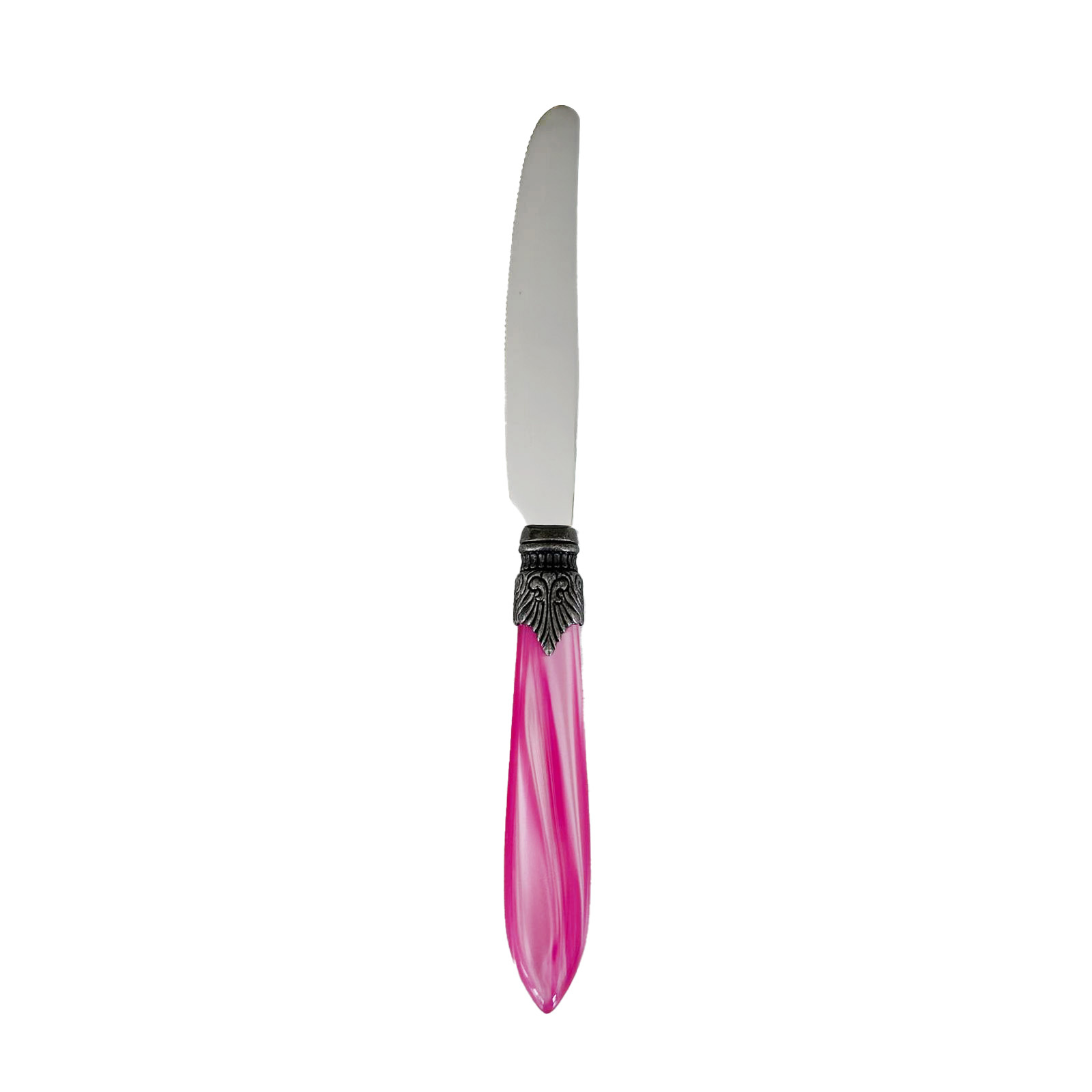 Het fruitmesje heeft een lemmet van roestvrijstaal, een heft van kunststof en in het midden een ornament van aluminium. De materialen zijn van zeer degelijke kwaliteit. Het lemmet is 1,2 mm dik, buigt niet door en is gemaakt van 18/10 roestvrijstaal. Het snijdt goed en blijft scherp omdat het is voorzien van een lichte karteling. Het heft is gemaakt van acrylaat, een sterke kunststof met een licht glanzend parelmoer effect. De kleur zal er niet afslijten omdat deze door het hele heft is aangebracht (en niet als een dunne coating aan het oppervlak).