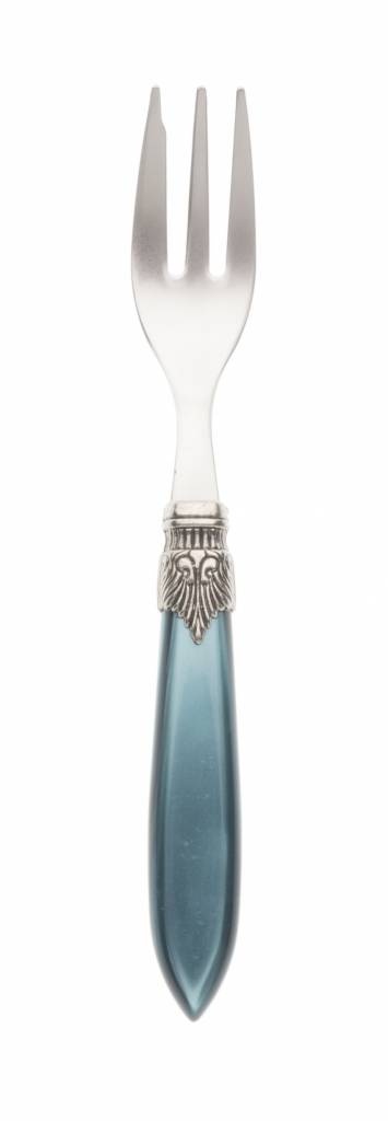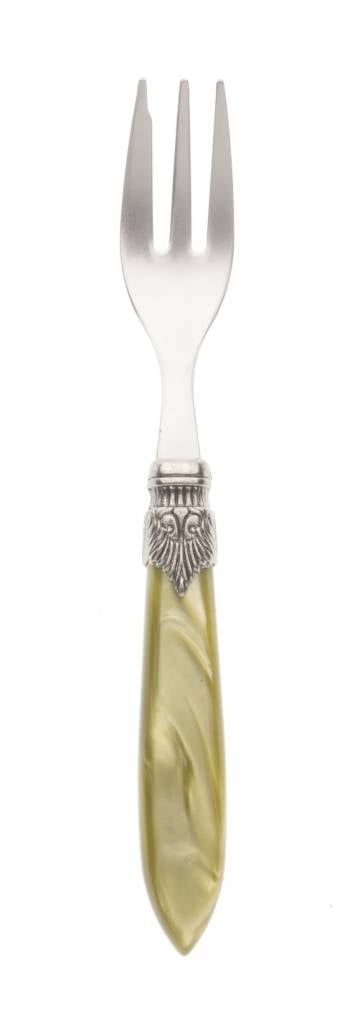 Het taartvorkje heeft een lemmet van roestvrijstaal, een heft van kunststof en in het midden een ornament van aluminium. De materialen zijn van zeer degelijke kwaliteit. Het lemmet is 1,5 mm dik, buigt niet door en is gemaakt van 18/10 roestvrijstaal. Het heft is gemaakt van acrylaat, een sterke kunststof met een licht glanzend parelmoer effect. De kleur zal er niet afslijten omdat deze door het hele heft is aangebracht (en niet als een dunne coating aan het oppervlak).